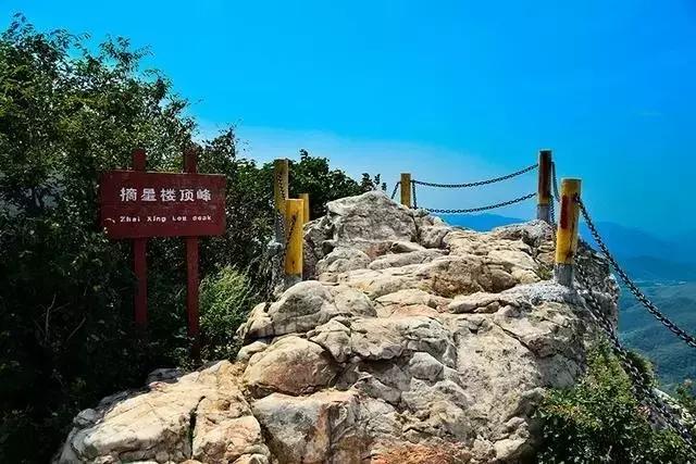 摘星楼,不敢高声语,恐惊天上人。具有神秘色彩的摘星楼是大鸿寨山一座孤立陡峭的山峰。海拔1060米,方圆34平方米,呈东西走向。峰锐若削,耸立入云。